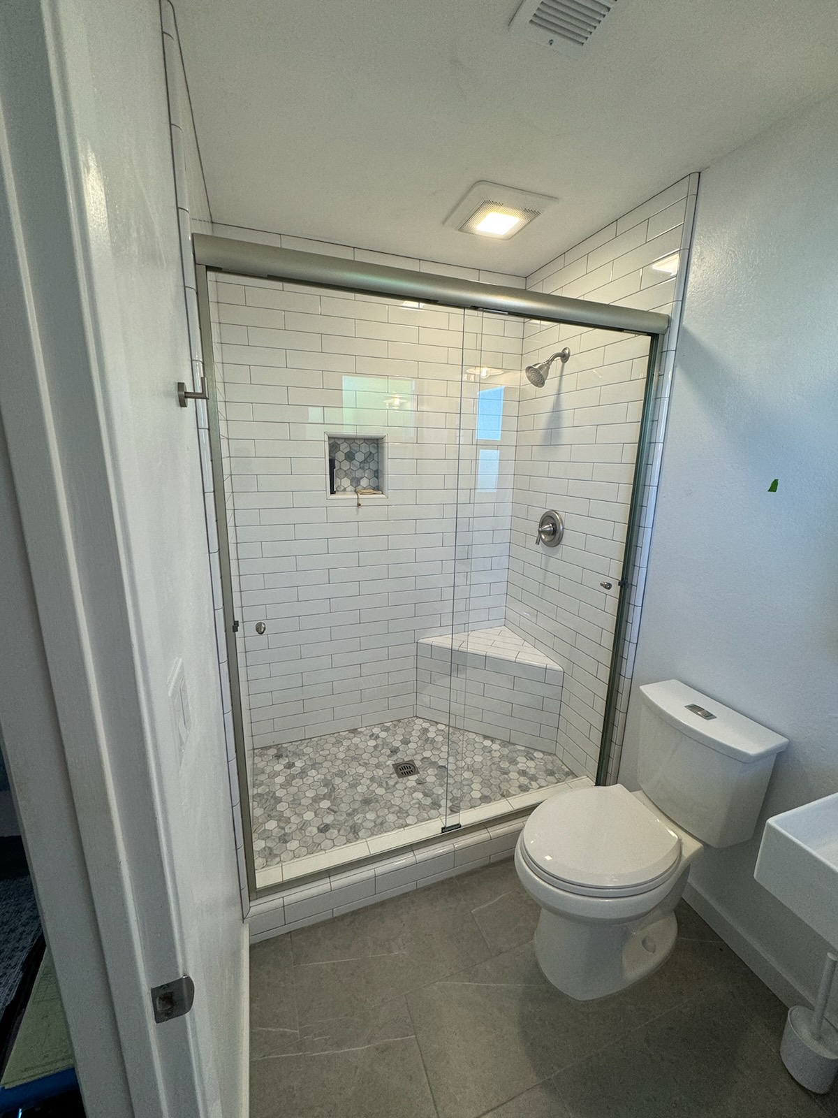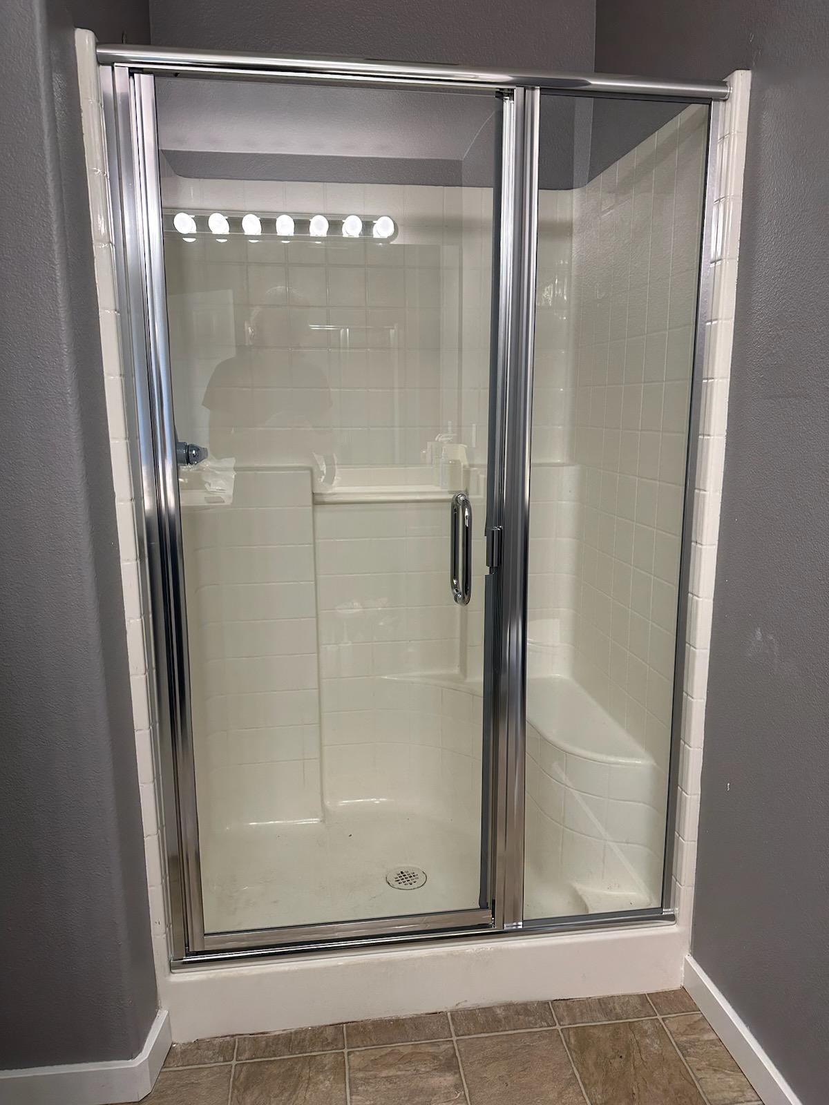 Do you have a typical 5 foot opening to a shower space and want a nice shower enclosure? Have a larger space and want more than one door on your enclosure? An inline is one of our most popular styles. Typically this setup includes a fixed panel and a swinging door. Sometimes, bigger spaces can call for more than 1 fixed panel and/or door. We custom build all of our enclosures, so your options of door placement and fixed panels are plenty. Let us show you what we can do with your space!